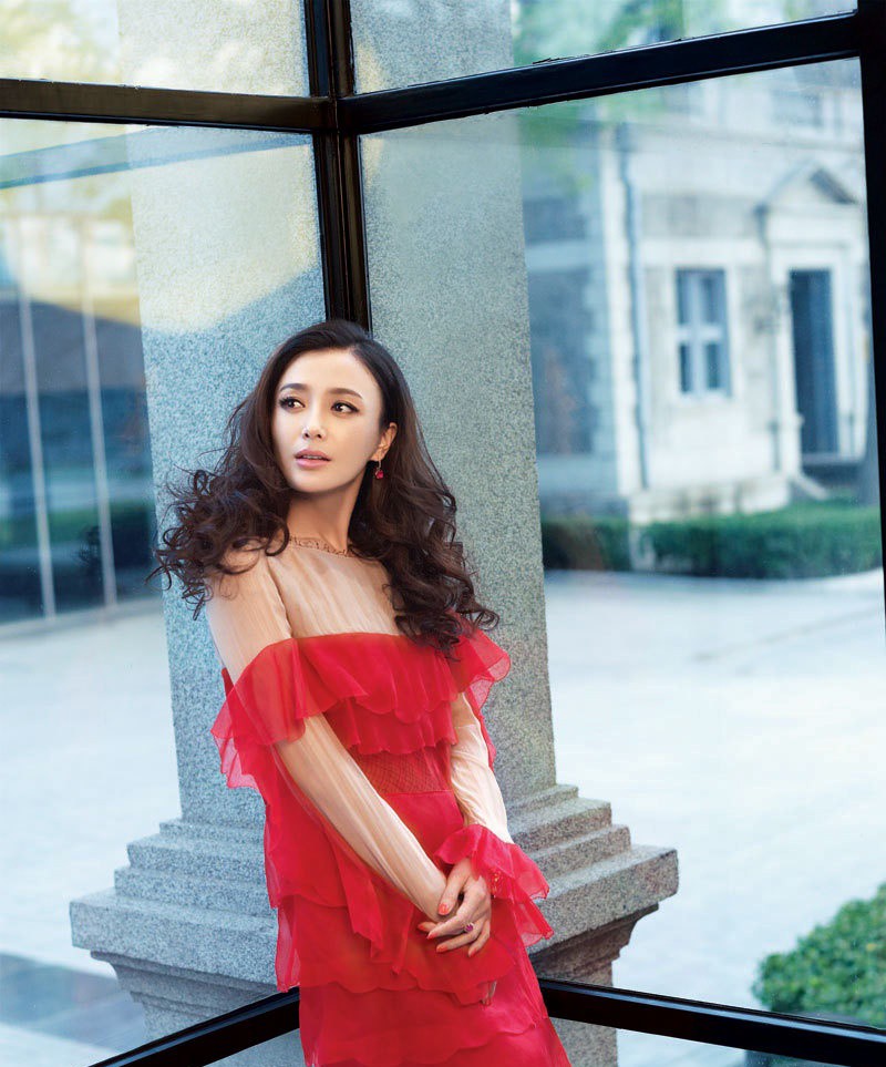 秦岚一袭红裙登封 光影间尽显东方高雅神韵